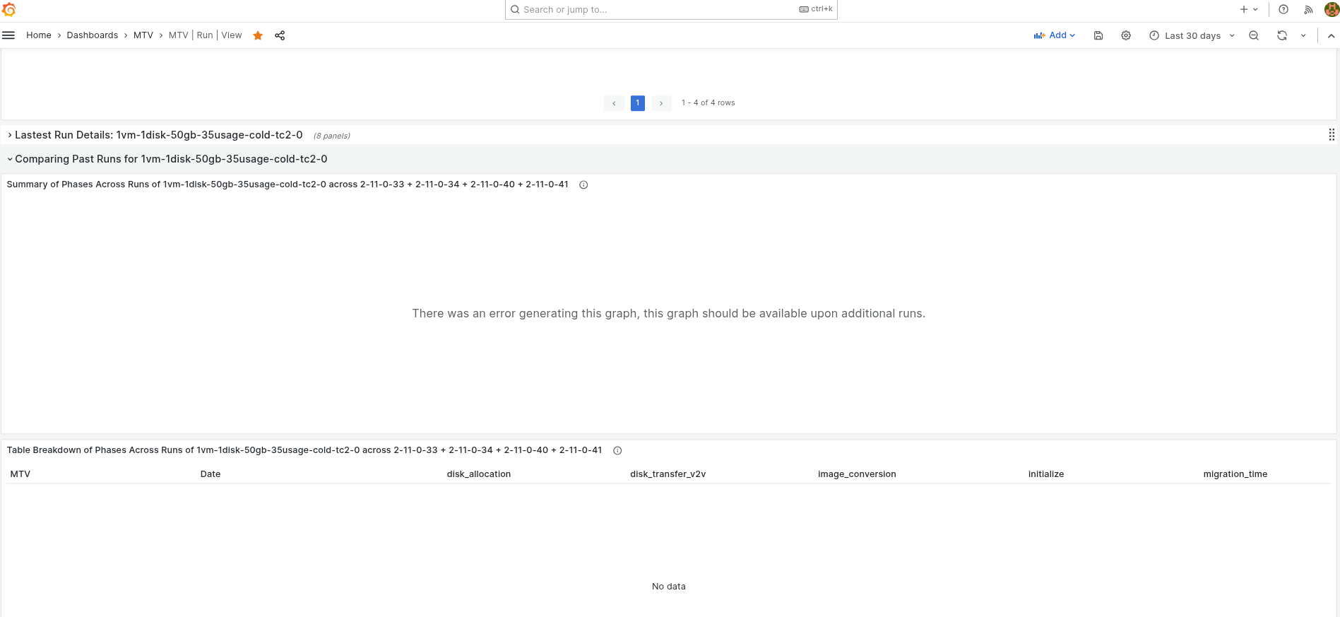 This task would create a 'view' in grafana based off of table which contains runs that can be filtered by different details of the run the results should be displayed as rows in a table.