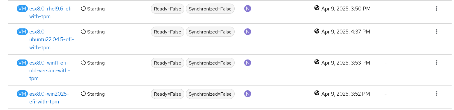 # virsh list --all Id Name State ----------------------------------------------------------------------------------------- ..... 16 esx8.0-ubuntu22.04.5-efi-with-tpm running .....