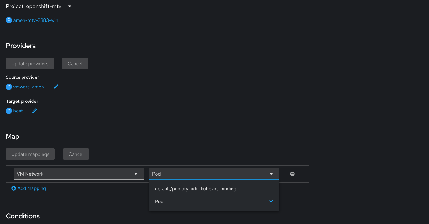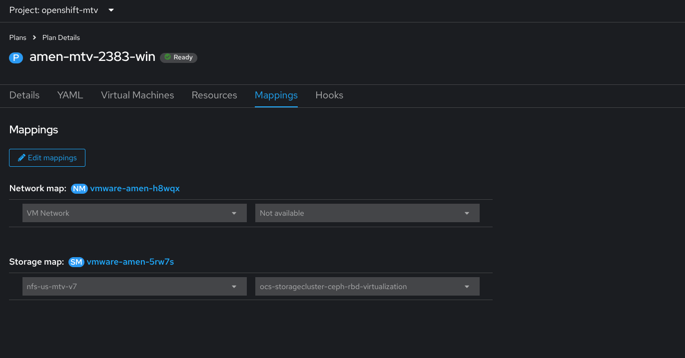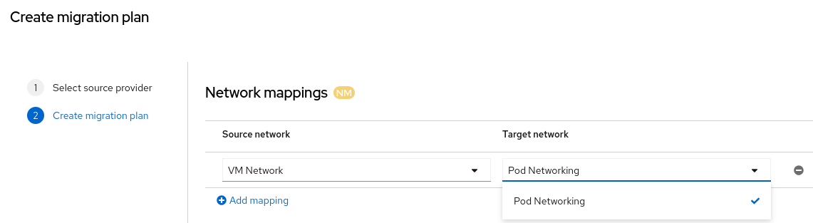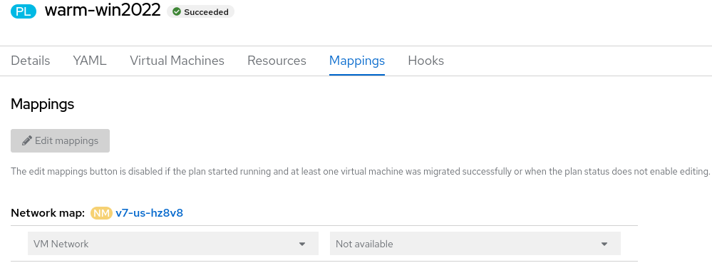 5) In Plan -> Plan Details -> Mappings: Network map page, "VM network" map to "Not available", no item E.g: "Ignore this network"