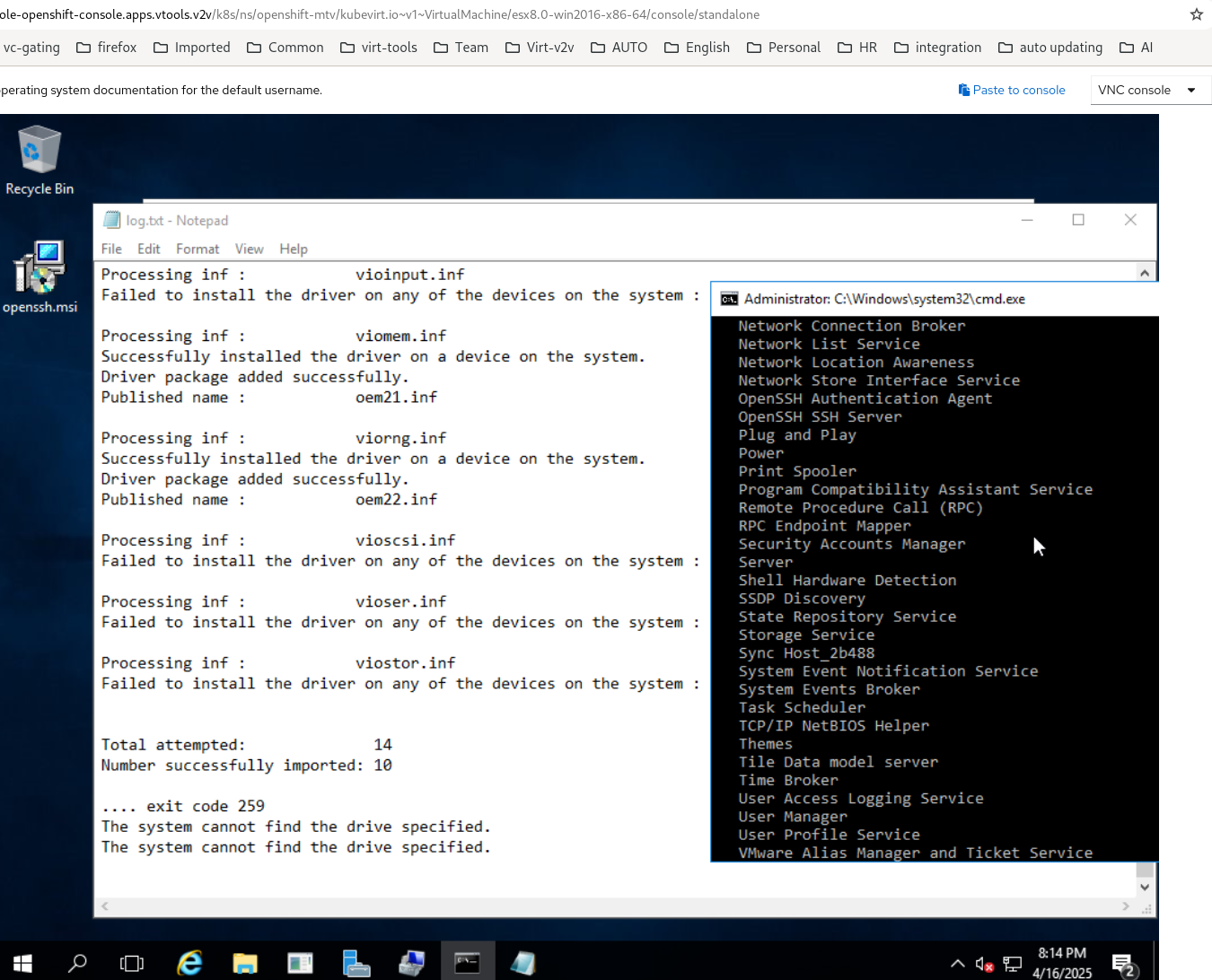 1. Migrate more than 8 windows guests from VMware on MTV
