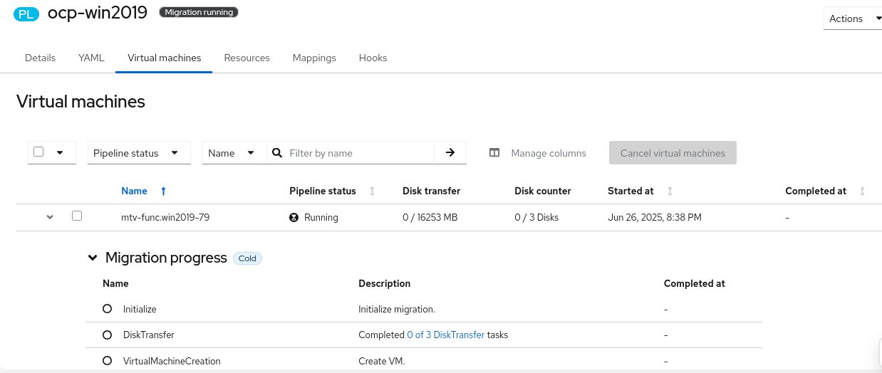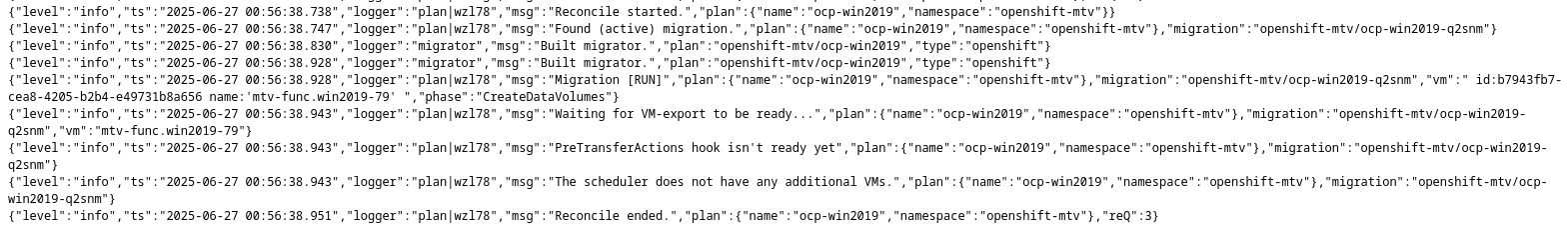 2) Try to migrate VM: mtv-func.win2019-79 from cluster 09d to 08d, the plan hang on initiate phase
