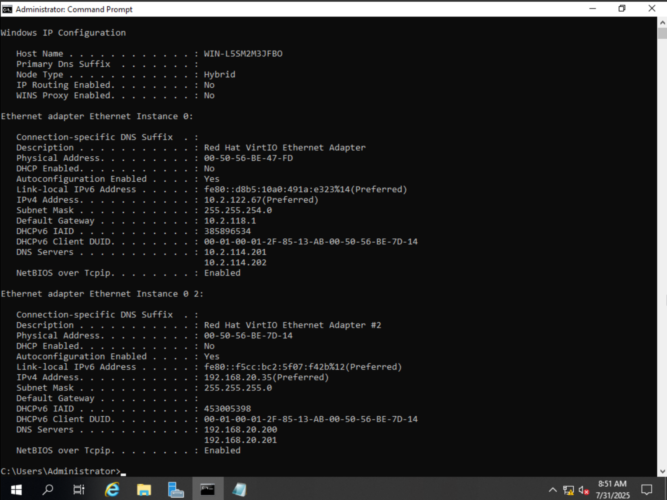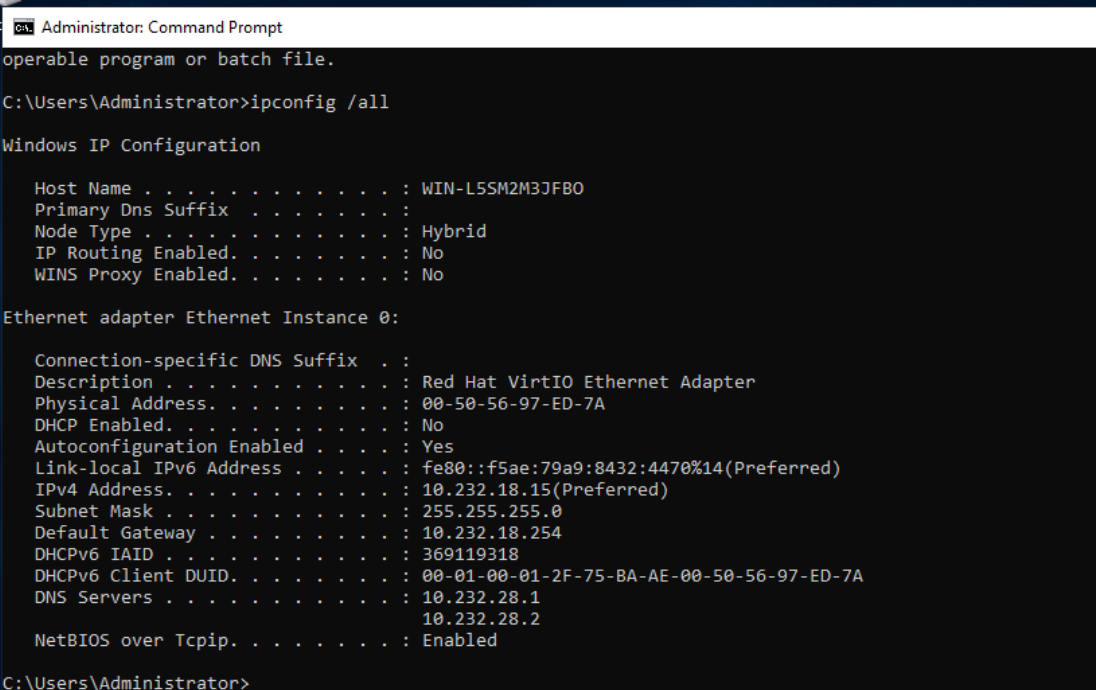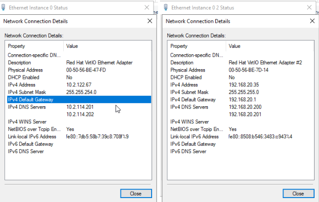Cold migrate win2019 VM from vCenter 7 to OCP cluster, the default geteway setting is no longer exist after migration. (The ip/subnet/gateway settings are following the settings in customer case)
