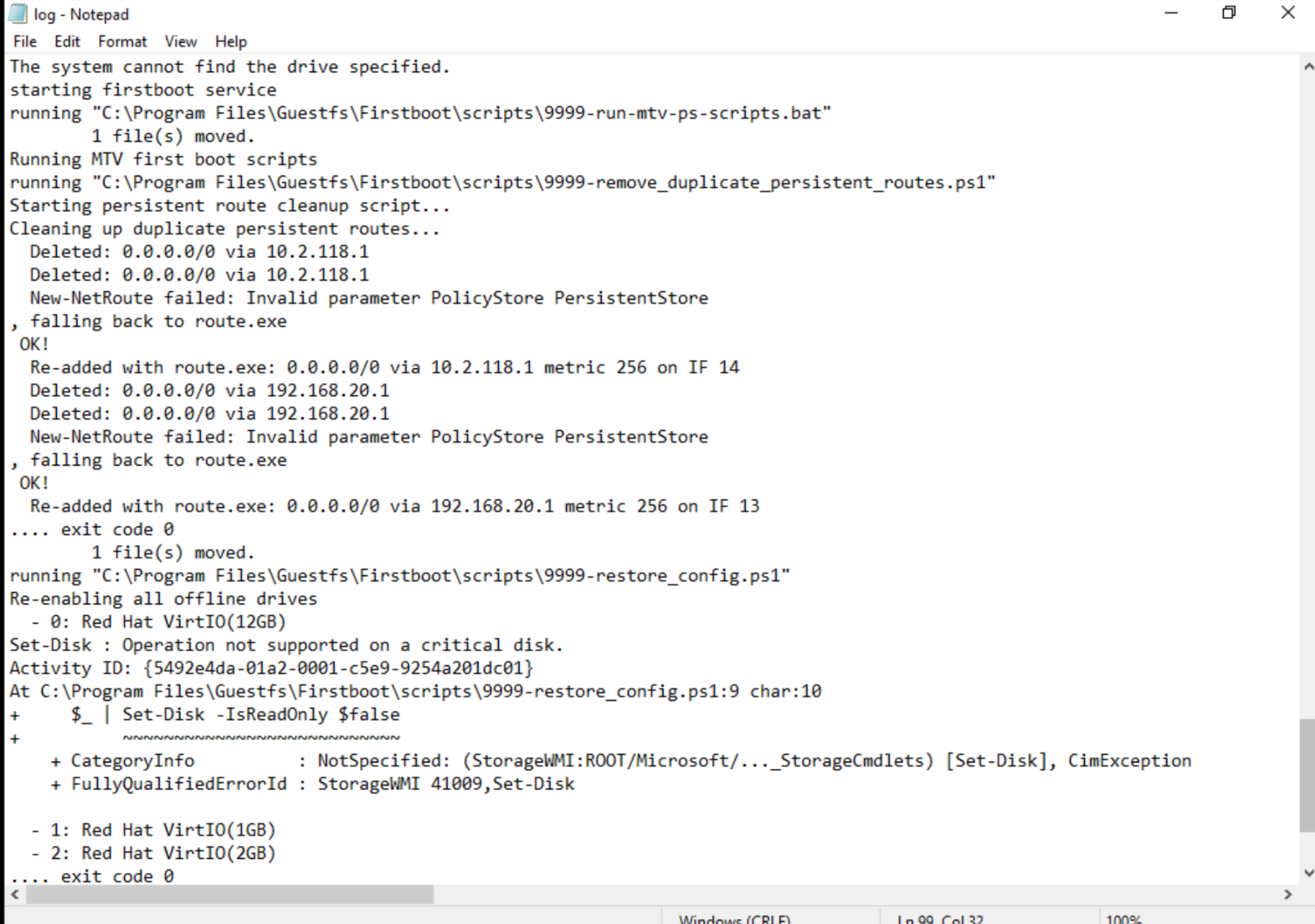 3) Check the v2v conversion pod log with correct gateway settings, more details in file: mtv-win2019-vm-2522-rxlb9-virt-v2v.logforklift-controller pod log: forklift-controller-74c4b7dcbb-zt9dv-main.log
