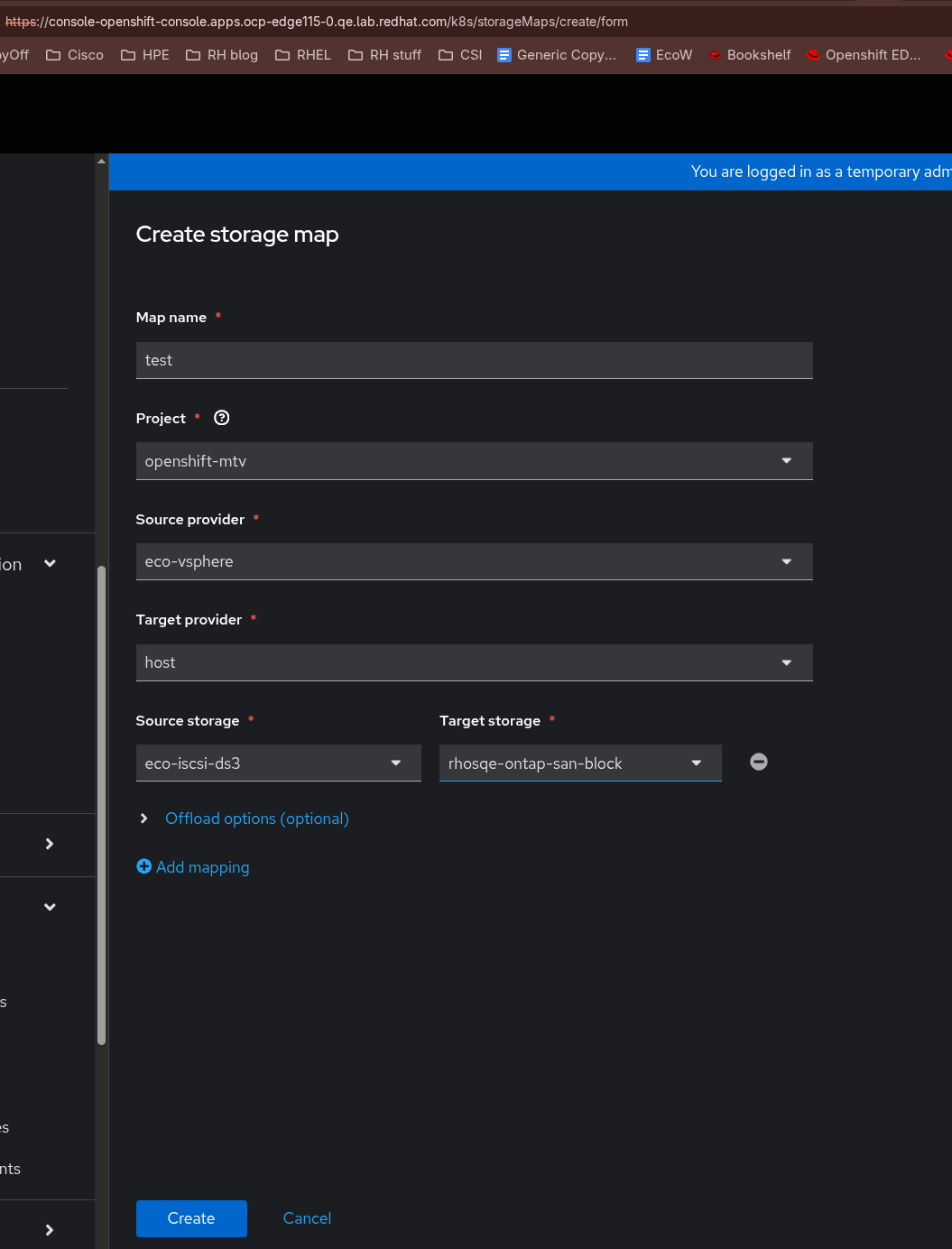 1. Create a new storage map, under "source storage" drop down, select one of the options which represent datastores on vmware, fill in the rest of the fields, click on "Create".