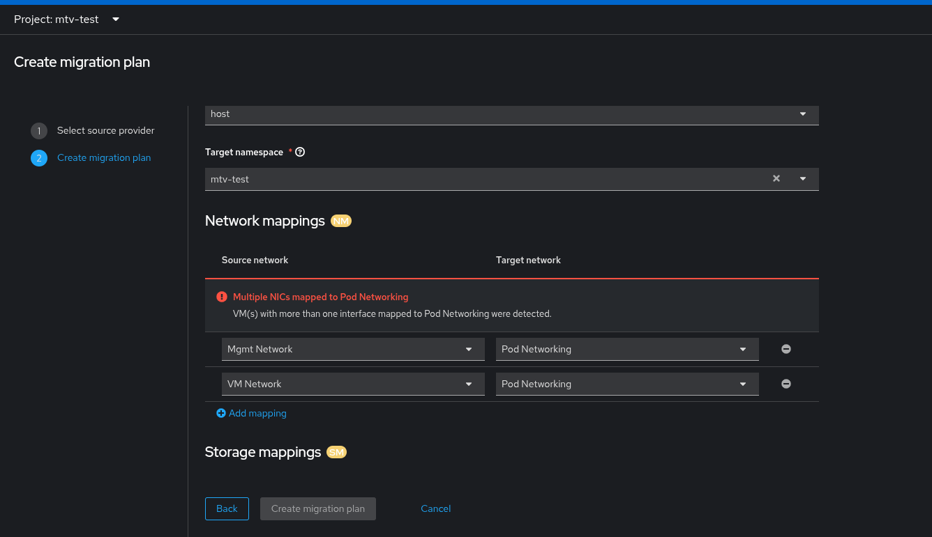 When creating a Plan in the new wizard with two NIC's connected to target network "pod" there is no concern, in 2.8.0 there was a concern and you couldn't proceed.