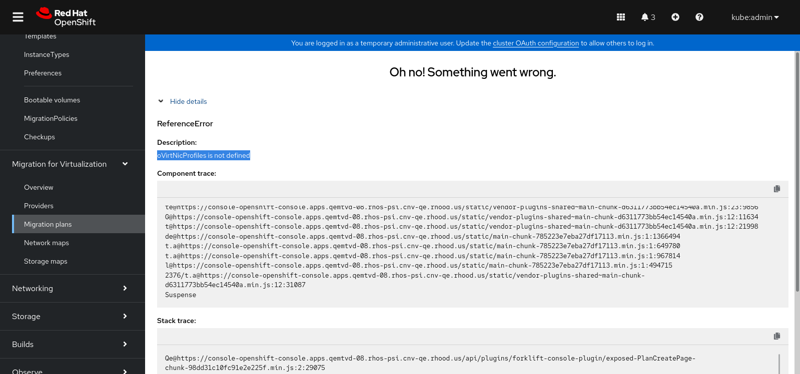 Try to create a plan, use new network map, hit unexpected error: "oVirtNicProfiles is not defined"