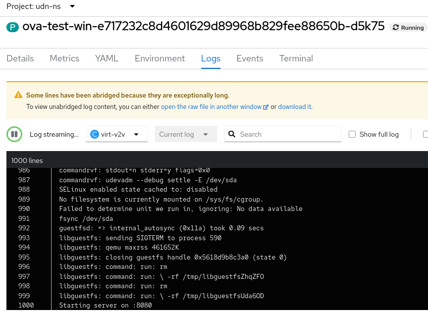 5)Check the conversion pod log without error, more details in attached file: ova-test-win-e717232c8d4601629d89968b829fee88650b-d5k75-virt-v2v.log