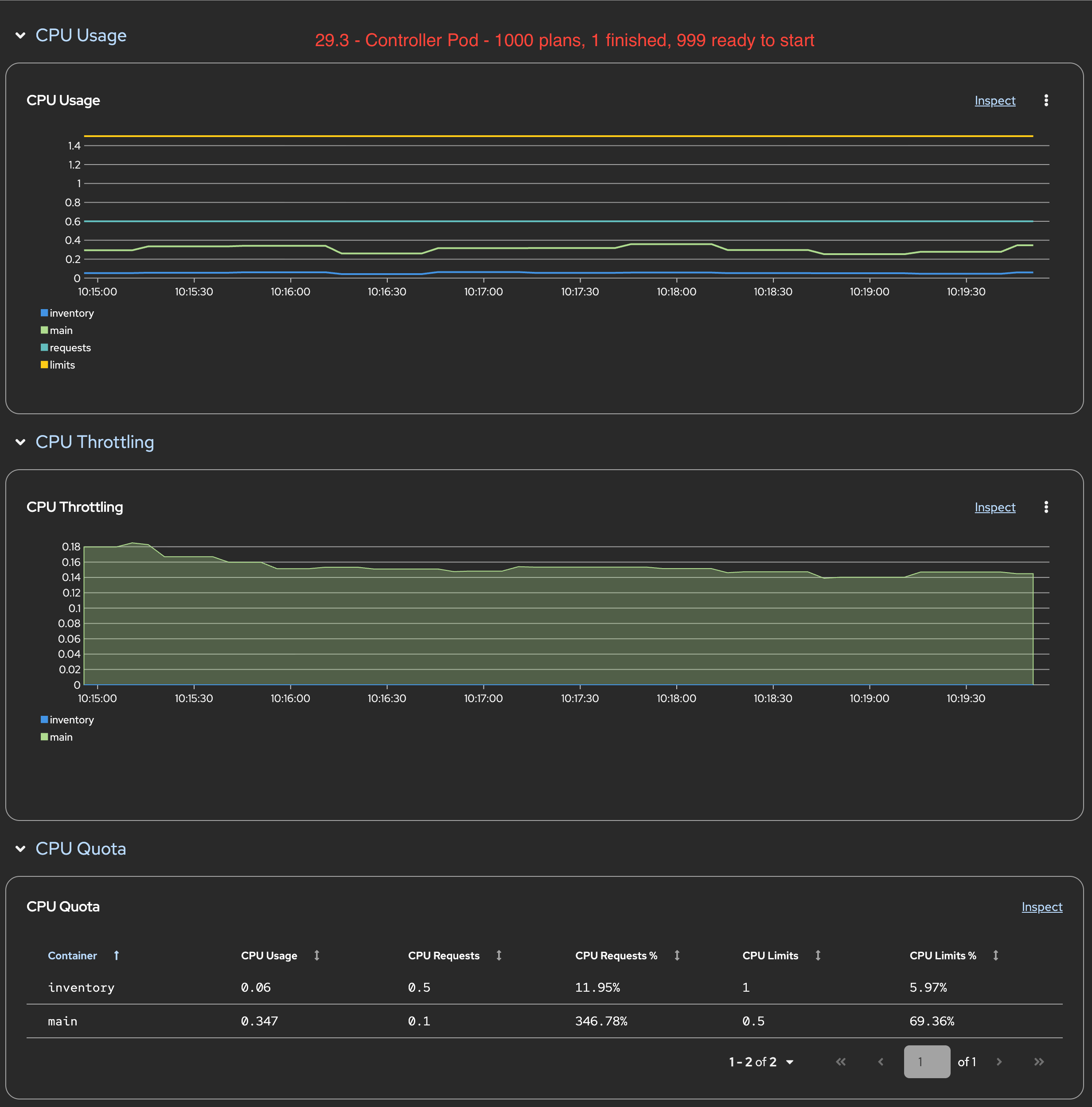 • If the customer clicks start in the UI, the system seems unresponsive, as it doesn't move for another 1m30s (500 plans) (or 3m with 1000 plans)
