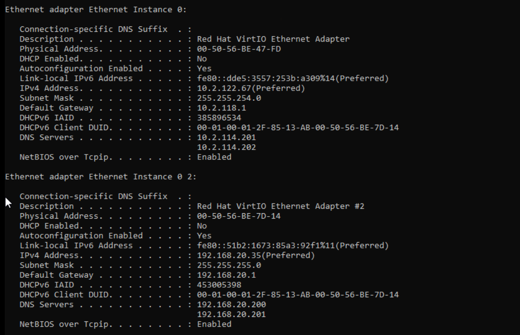 Cold migrate win2019 VM from vCenter 7 to OCP cluster, the default geteway setting is no longer exist after migration. (The ip/subnet/gateway settings are following the settings in customer case)