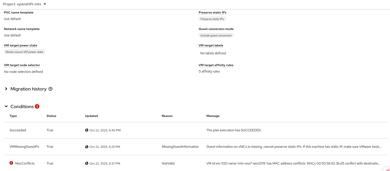 conflicts: MACs 00:50:56:94:fd:0f conflict with destination VM mtv-test/mtv-feature-rhel9-luks-nbde'