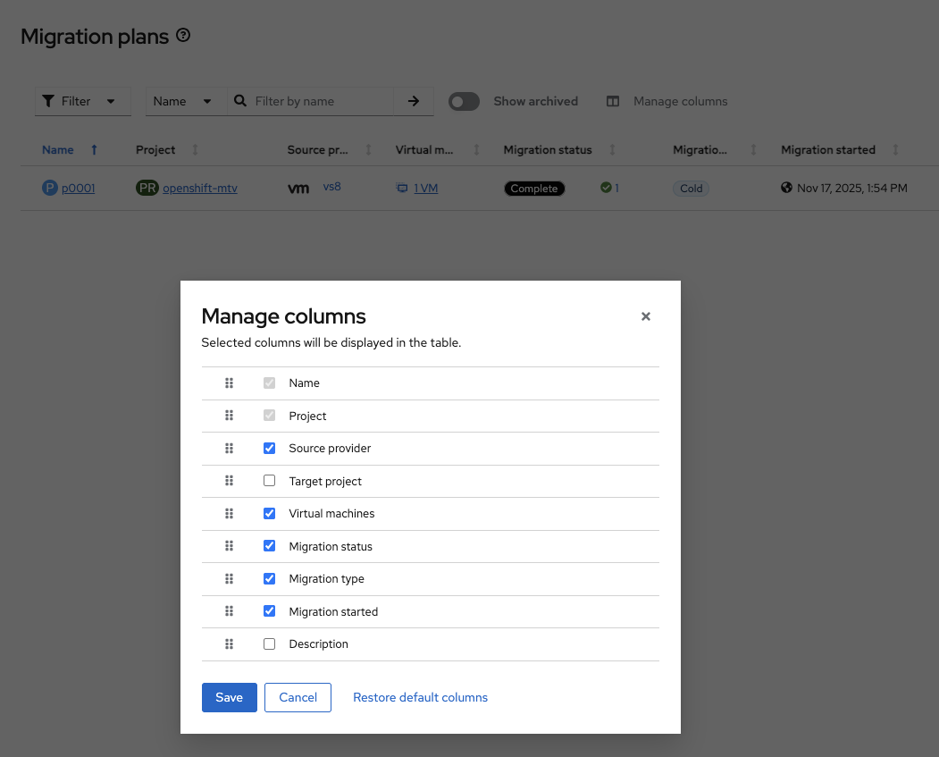 Consultants have noted that 'Target project' is the most sought-after information for VI admins. This column should be a default column instead of 'Source project,' which is 'openshift-mtv' in most cases.