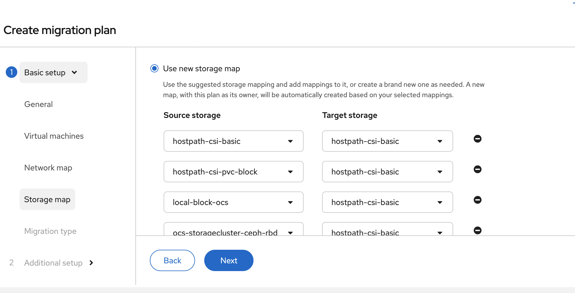1. Create a VM 2. Create a Plan to migrate the VM to another cluster 3. Select the storage map in the Plan