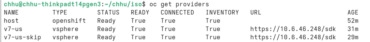 5) Create vCenter8 providers (with/skip certificate validation) successfully with MTV 2.10.3-4 on the same OCP cluster