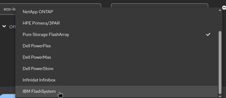 MTV-4514 Console: storage product dropdown shows duplicate FlashSystem entries and one does not work