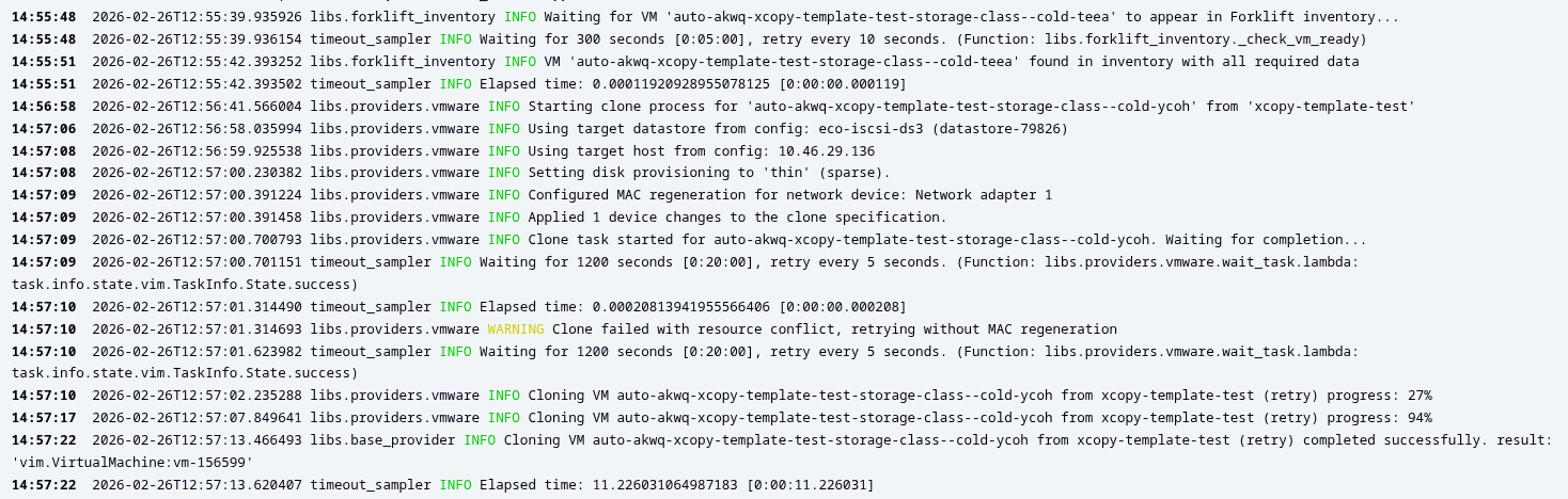 09:27:50 2026-02-26T09:27:42.294304 timeout_sampler INFO Elapsed time: 0.0001385211944580078 [0:00:00.000139] 09:27:50 2026-02-26T09:27:42.294525 libs.providers.vmware WARNING Clone failed with resource conflict, retrying without MAC regeneration