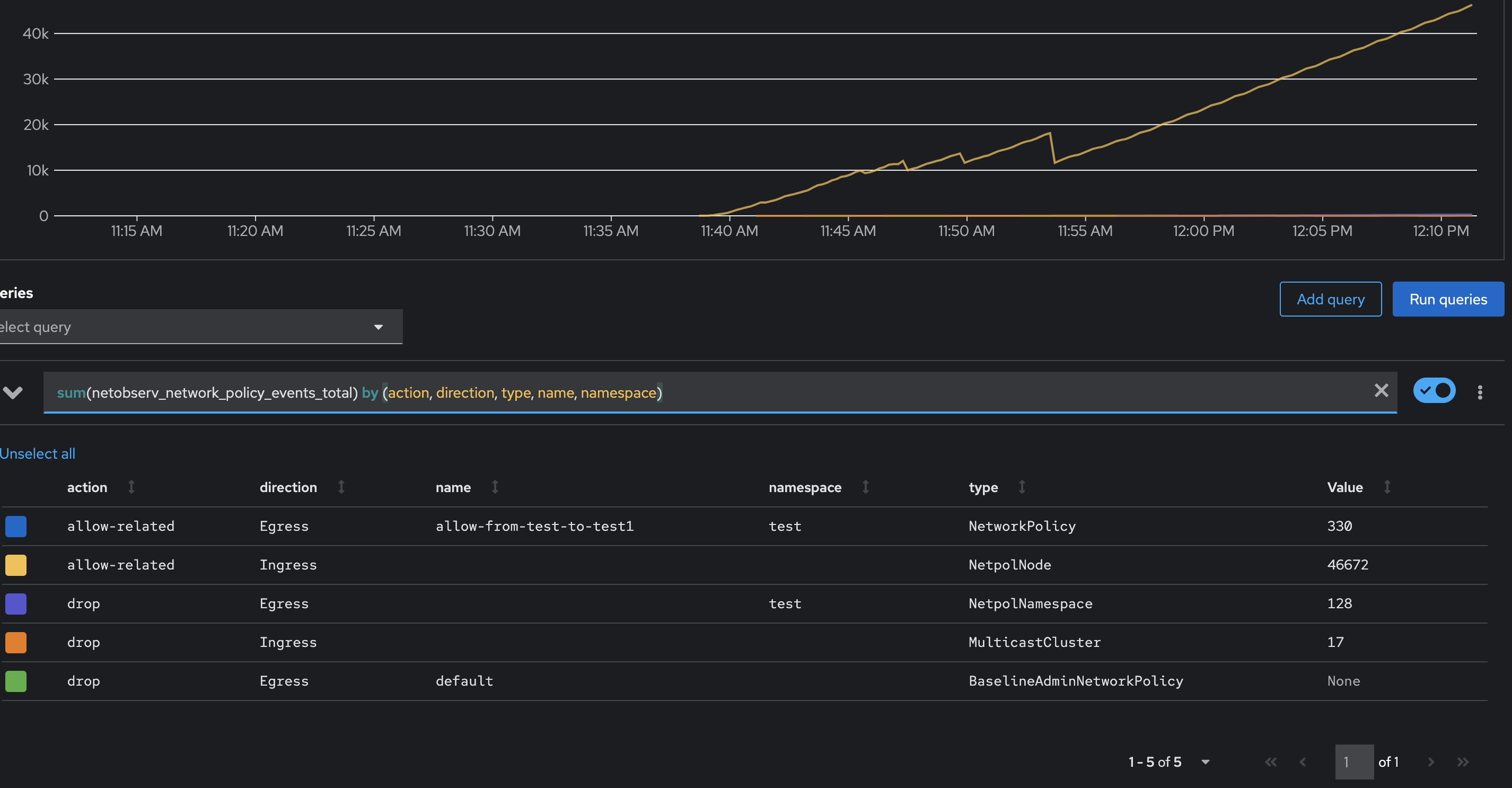 Labels: [SrcPod, DstPod, networkEvents.name]