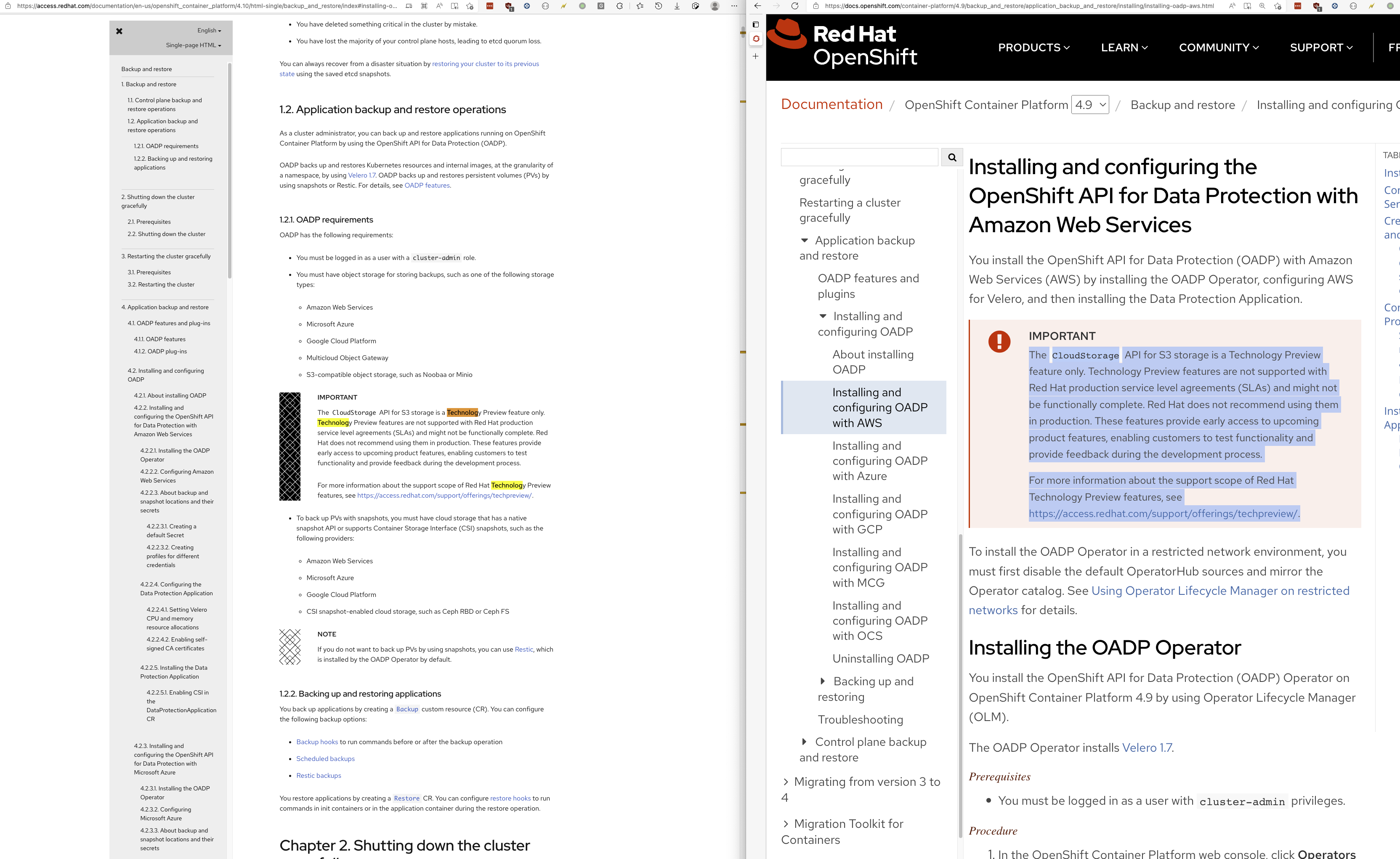 It has caused confusion among users to think that object storage may not work at all which isn't true.. example https://docs.openshift.com/container-platform/4.9/backup_and_restore/application_backup_and_restore/installing/installing-oadp-aws.html