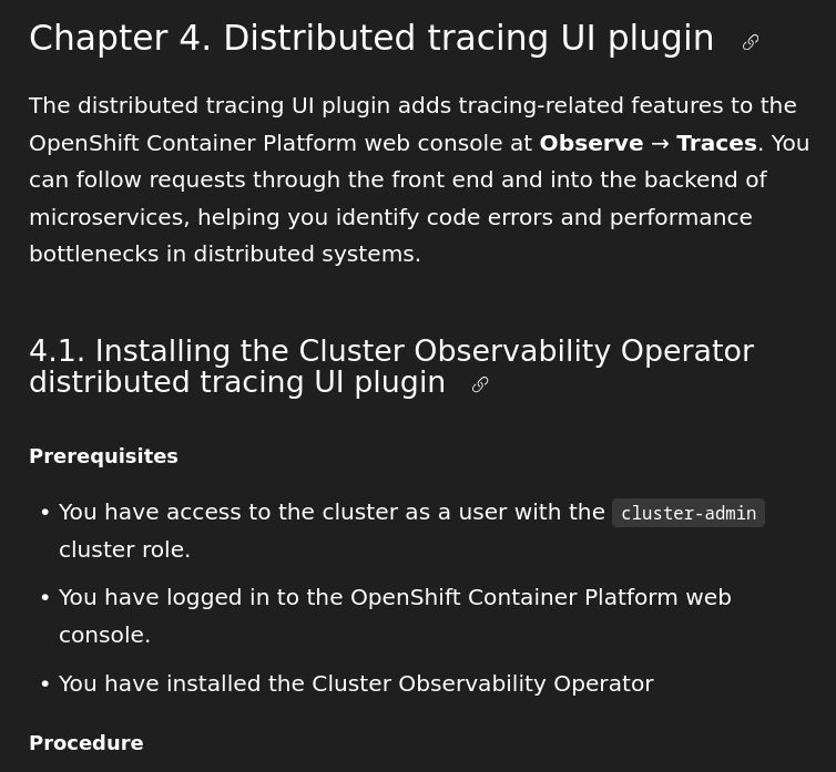 Remove Tech Preview note for Distributed Tracing UI Plugin.