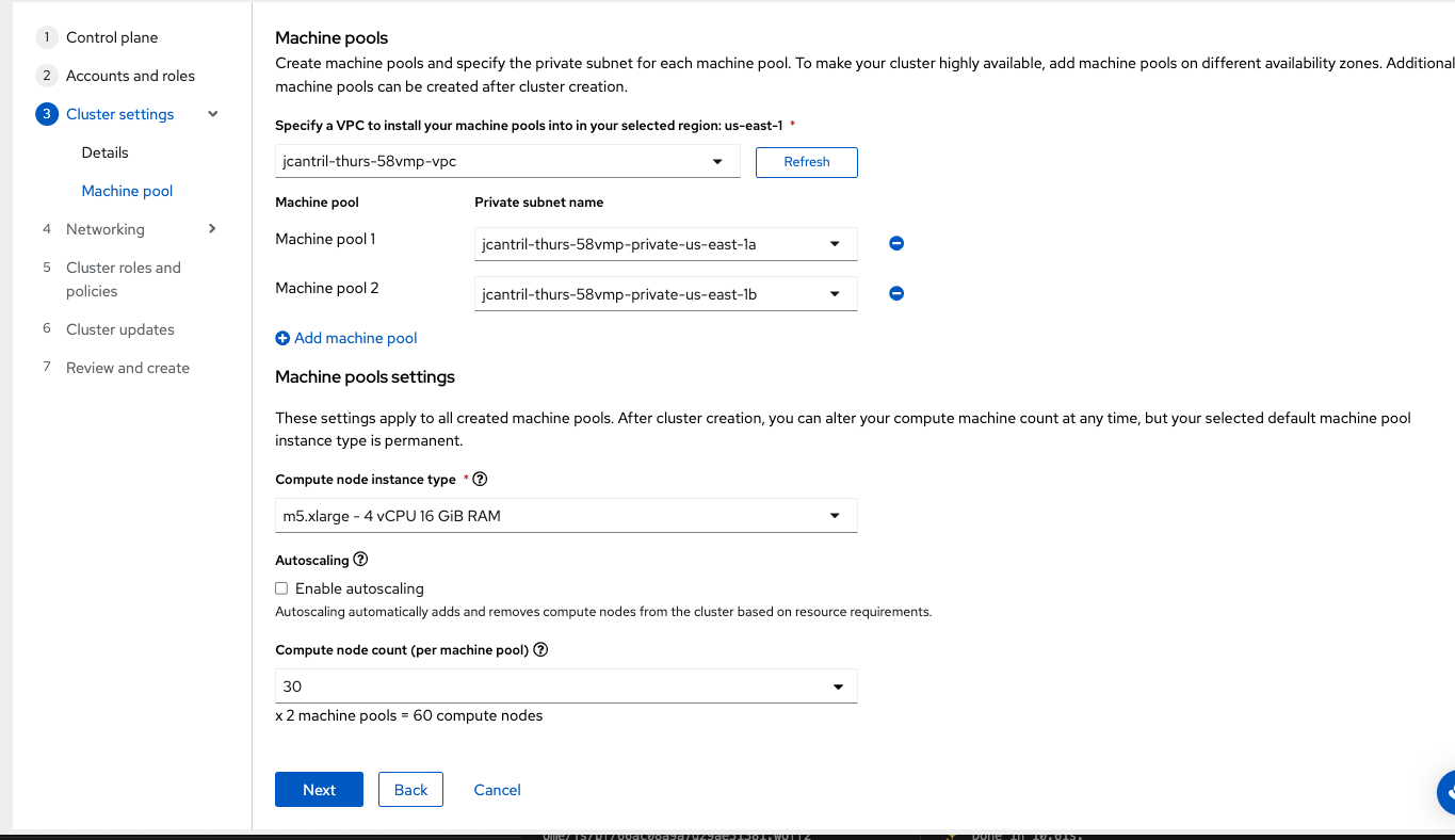 - On the HCP wizard, on the Cluster settings > Machine pool step: