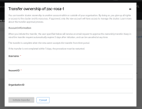 - 3 fields will be available for recipient username, recipient account, and recipient org (currently transferring to another org is not complete on the backend)