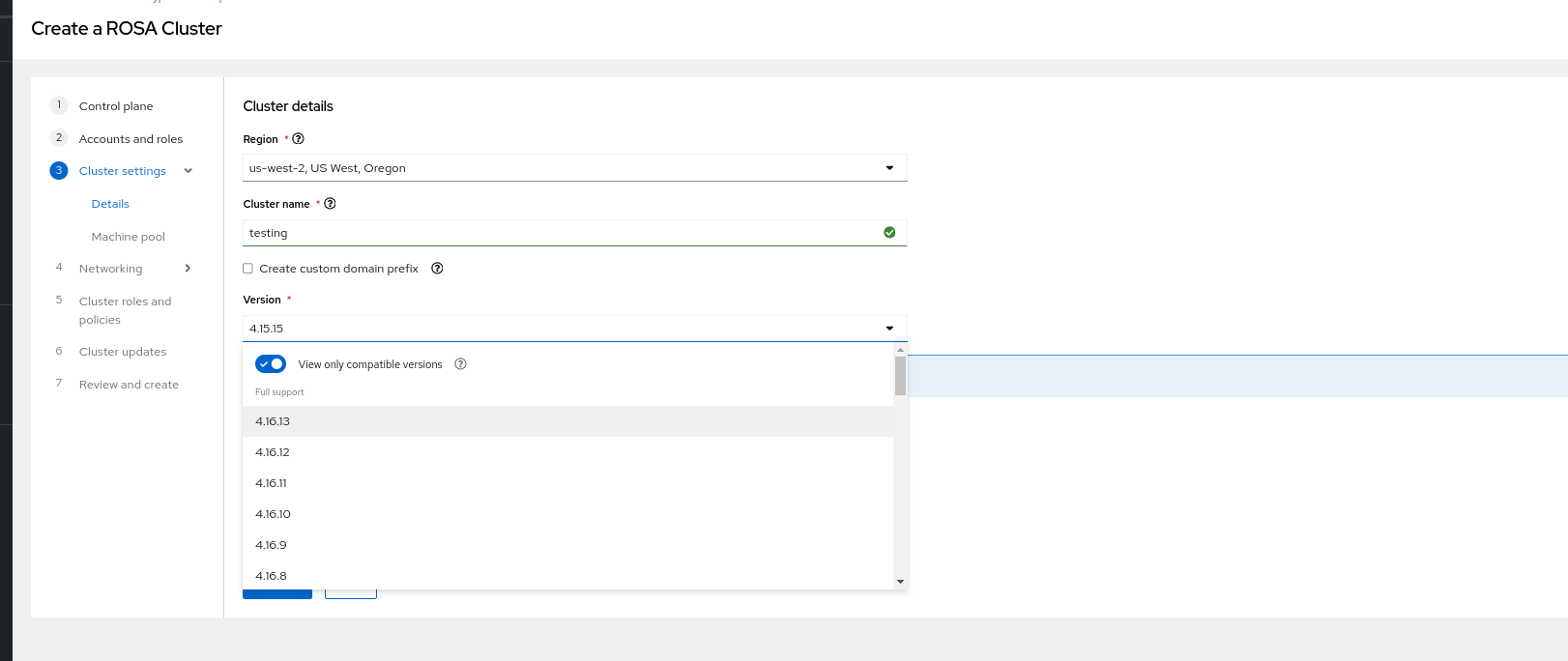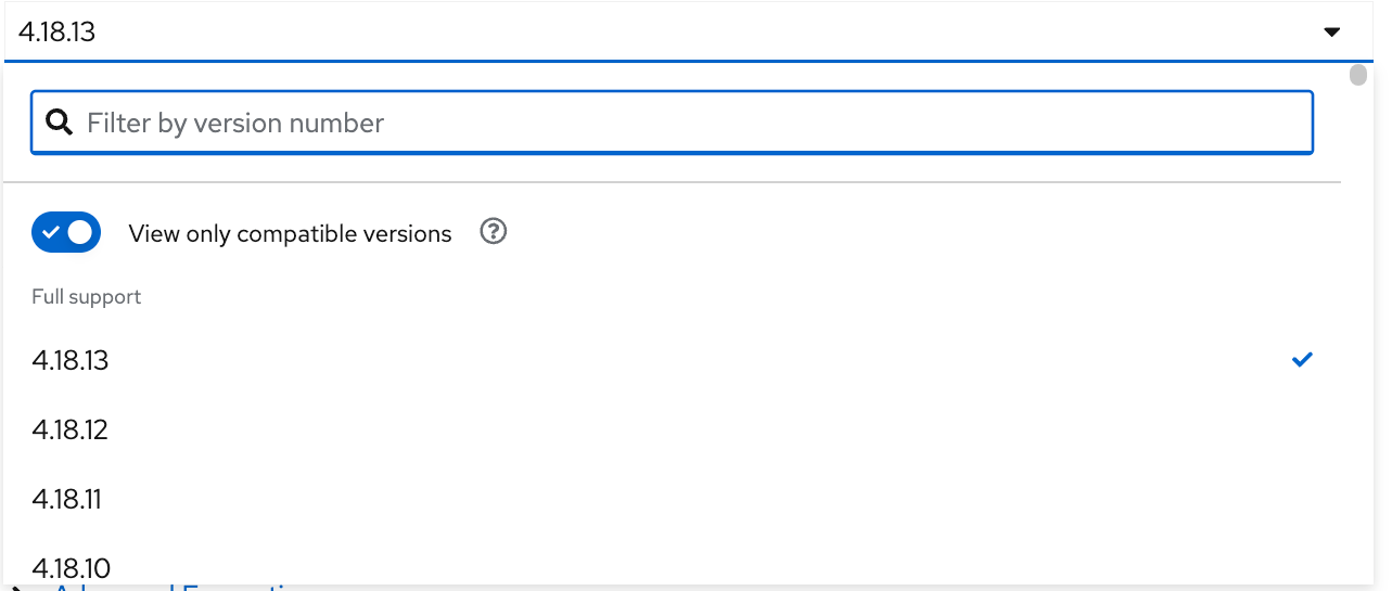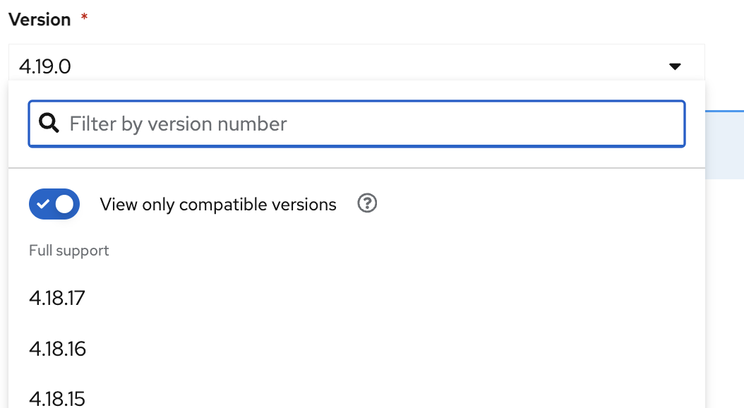 Include "Filter by version" field in version dropdown from ROSA wizard