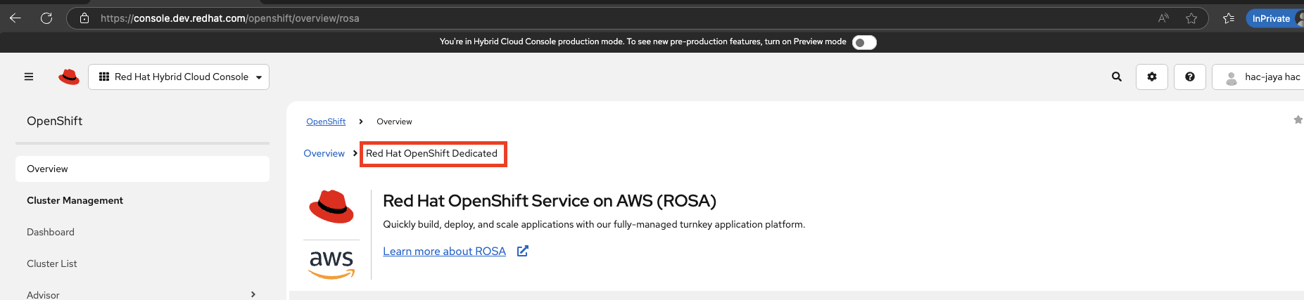 1. Launch the page https://console.dev.redhat.com/openshift/overview/rosa