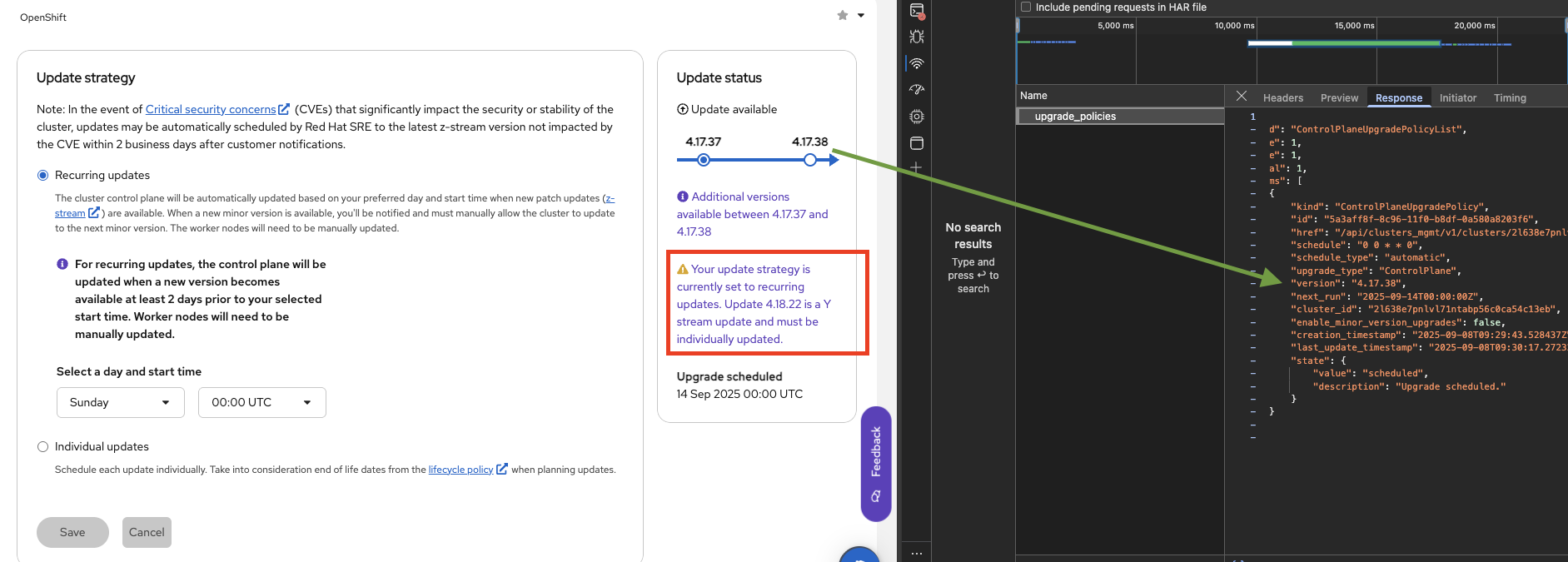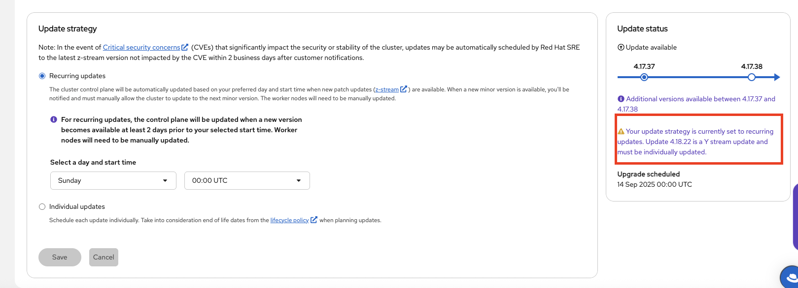 [Cluster Upgrade] Misleading "Y-stream" upgrade note on recurring updates strategy in Settings tab