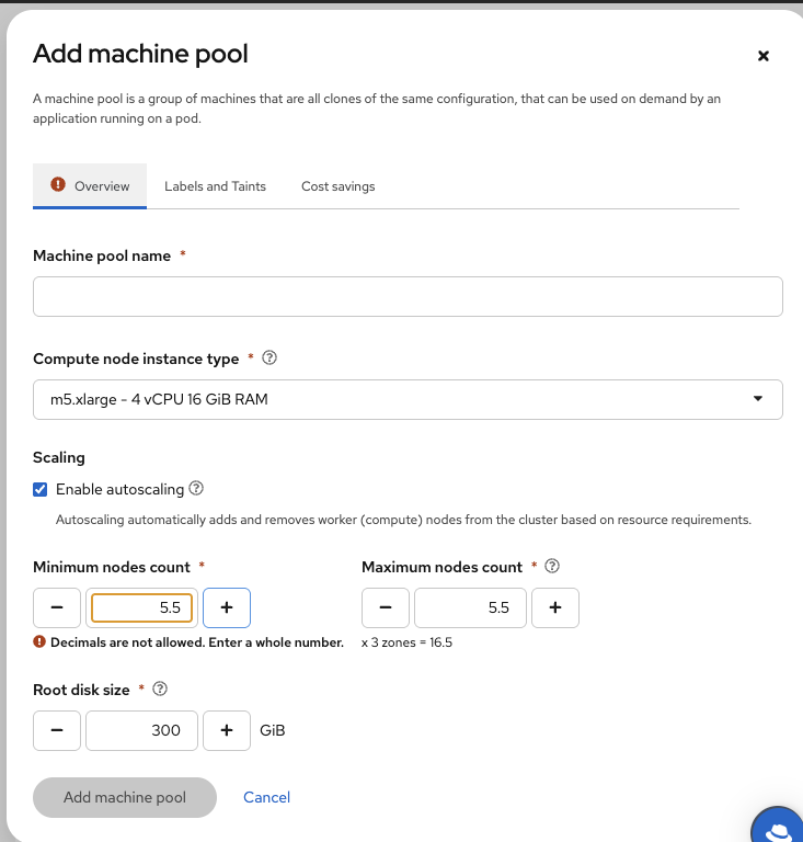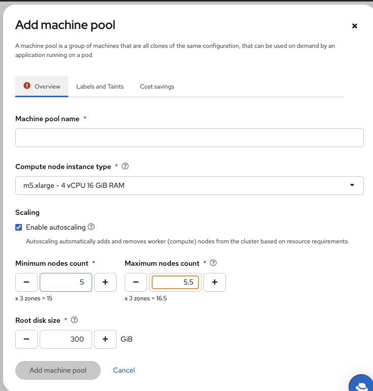 - Click "Add machine pool"