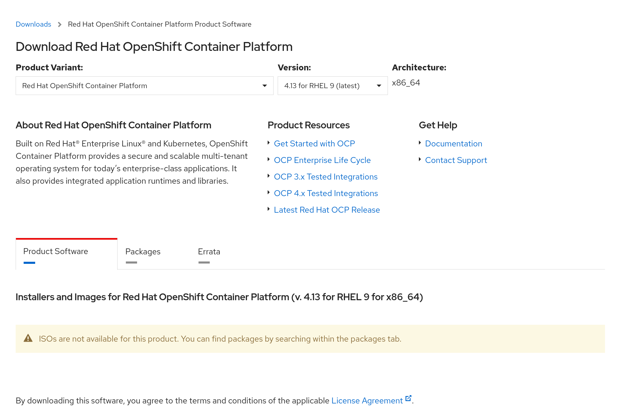 Page reports "ISOs are not available for this product. You can find packages by searching within the packages tab."