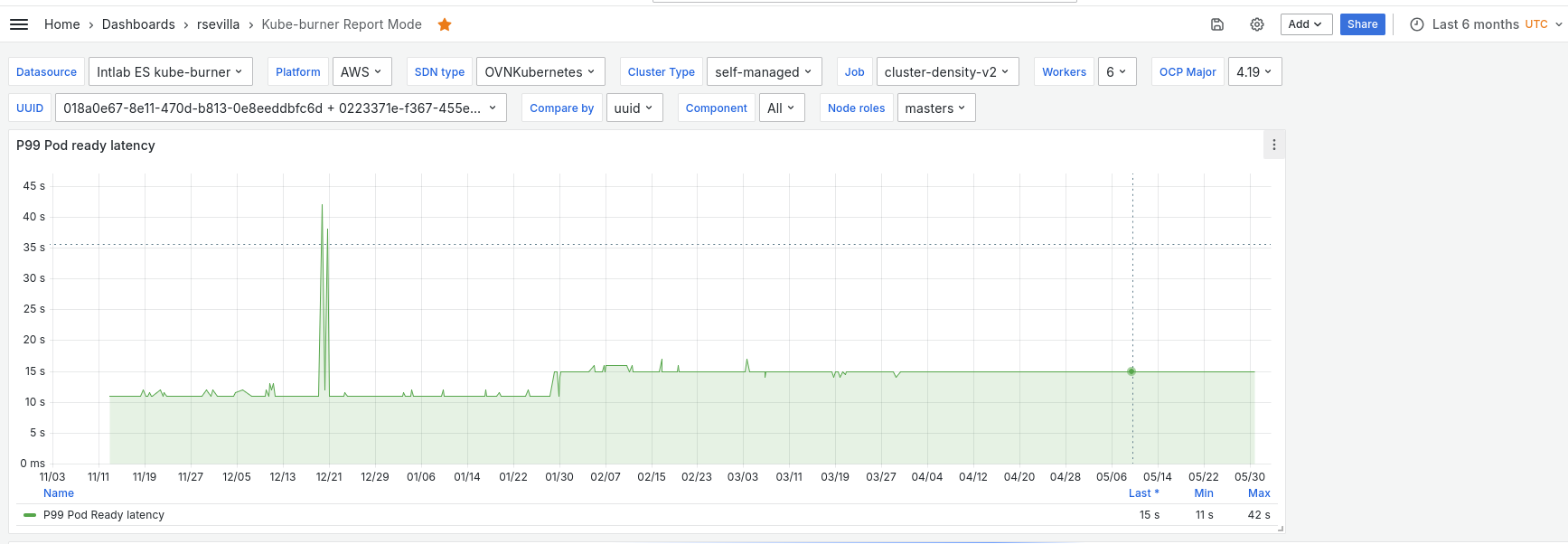 Observe cluster-density-v2 p99 is >=15s and max is between 17-40s