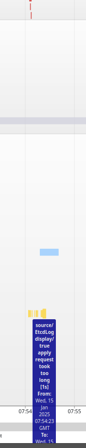 Additionally at the same time in the intervals are pod log entries for etcd indicating 'apply request took too long':