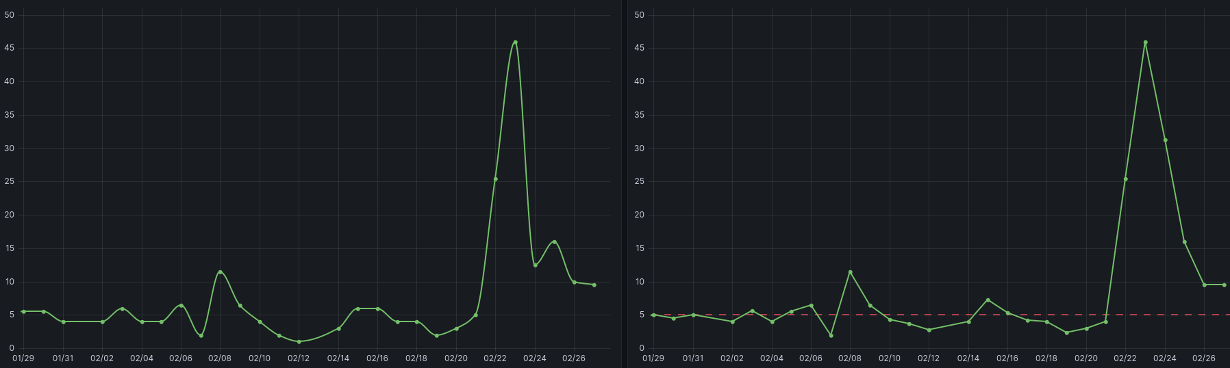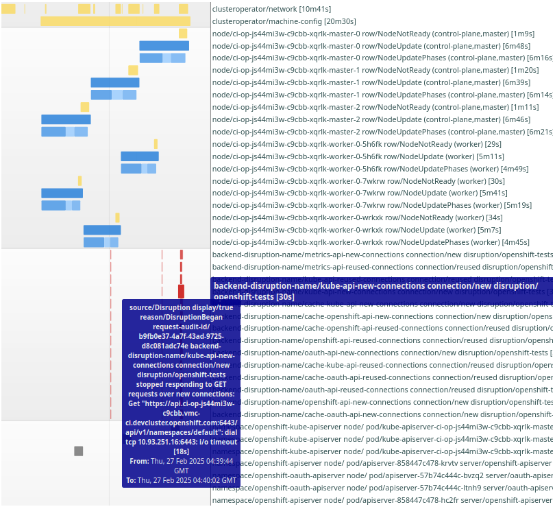 Reviewing periodic-ci-openshift-release-master-ci-4.19-upgrade-from-stable-4.18-e2e-vsphere-ovn-upgrade/1894941148963672064 show that on the 3rd master node update (master-0) we can see disruption far outside the norm