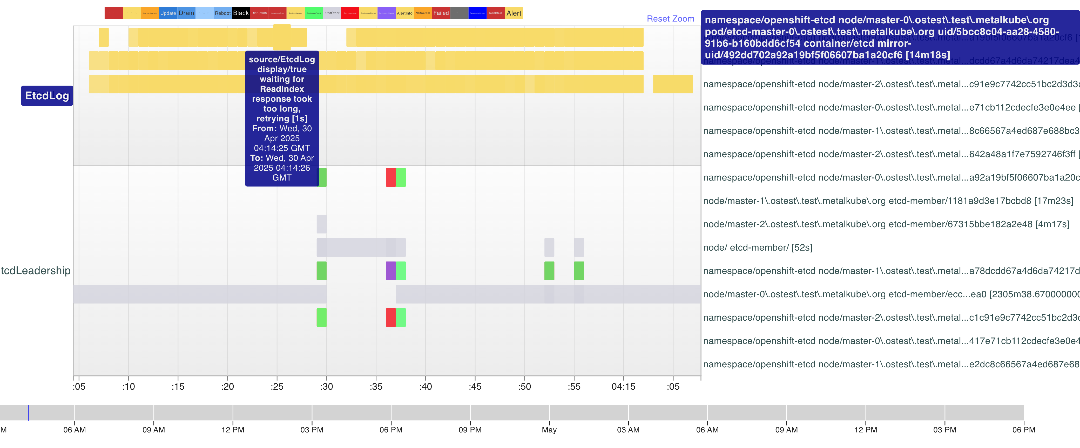 In Component Readiness for 4.19, in periodic-ci-openshift-release-master-nightly-4.18-e2e-metal-ipi-ovn-upgrade-runc and periodic-ci-openshift-release-master-nightly-4.19-e2e-metal-ipi-upgrade-ovn-ipv6 test we're seeing a couple repeated failures with error pattern similar to: