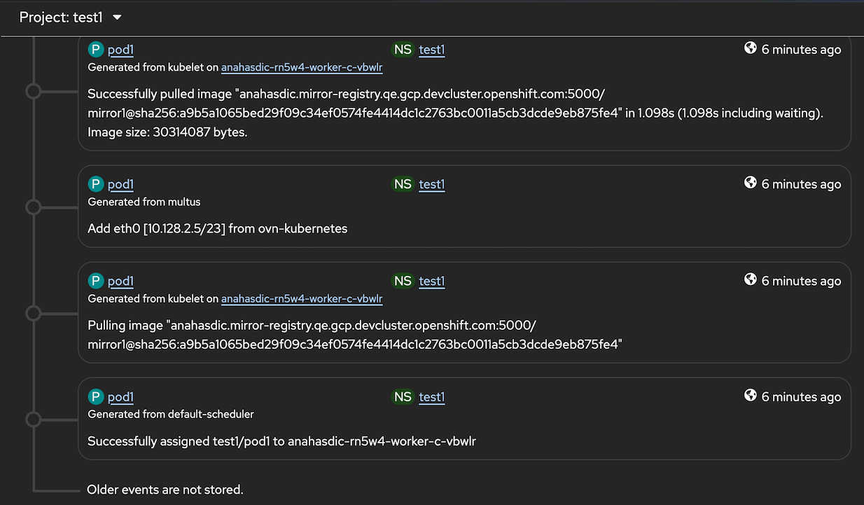 5. Create a pod pulling the image from main/original repo, image is going to be pulled successfully "d_log2.txt", "success_fail.png" (original repo pod is on the right side)