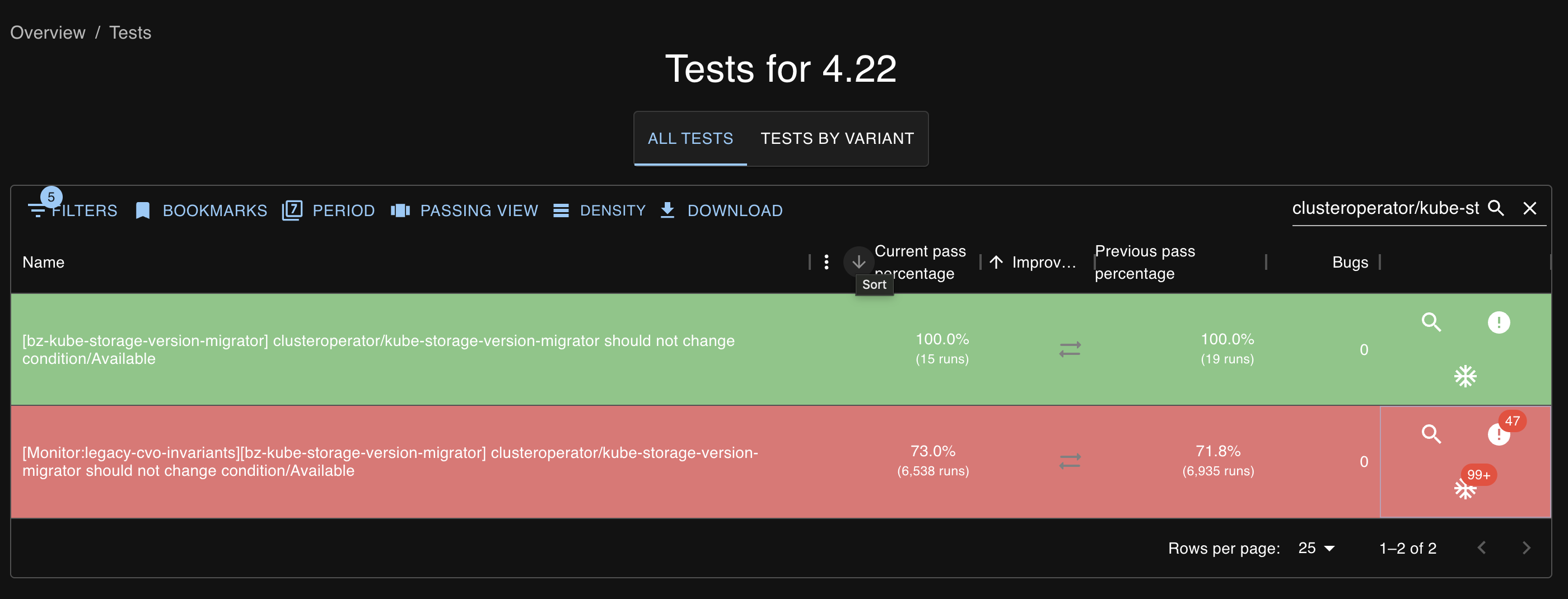 : [Monitor:legacy-cvo-invariants][bz-kube-storage-version-migrator] clusteroperator/kube-storage-version-migrator should not change condition/Available expand_lessRun #0: Failed expand_less1h43m17s{ 0 unexpected clusteroperator state transitions during e2e test run, as desired.