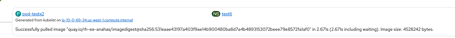 • "Pulled image: quay.io/rh-ee-anahas/imagedigest@sha256:531eaae...a1af0" file="server/image_pull.go:122"