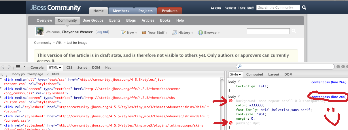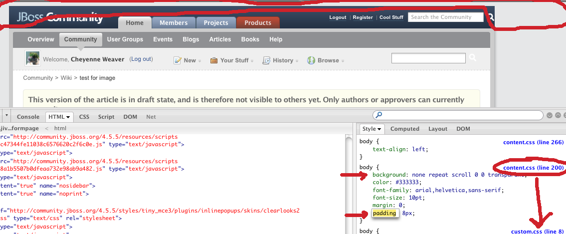 Some css on the body tag is messing up the header (padding and background attributes) in Edit view.