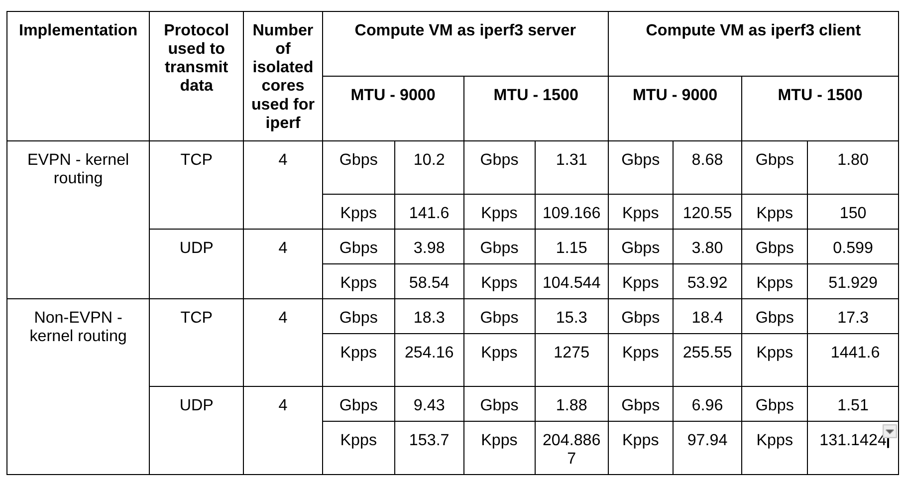 Forwarding performance baselining for BGP-EVPN in Kernel data path