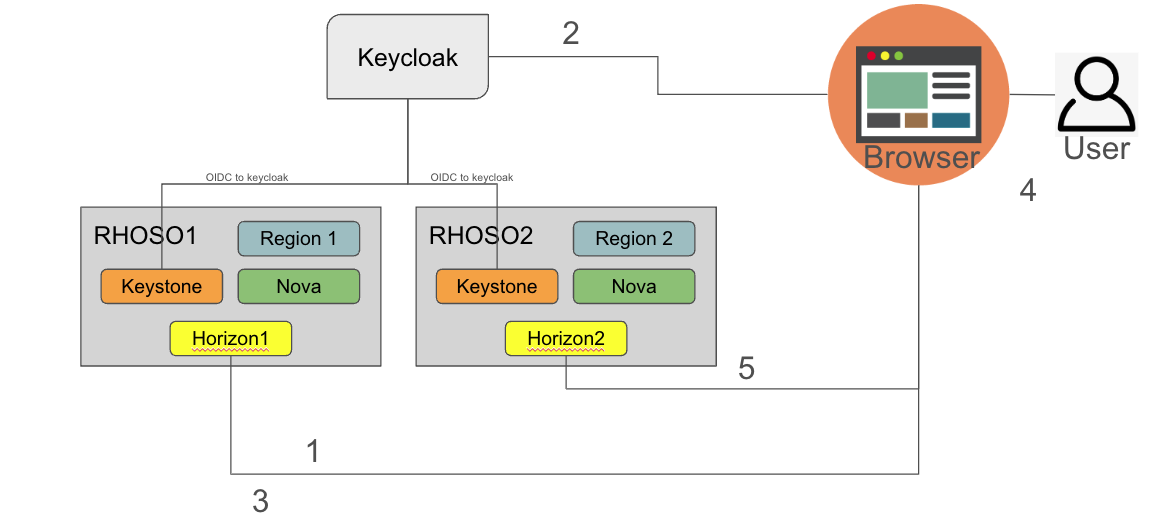 - We need to determine our level of support for a multi-region deployment of several clusters sharing the same federated IdP. The question to answer is whether or not a user is required to re-authenticate when moving from cloud A to cloud B while possessing a valid token from Keycloak (OIDC provider). This must be done with the Horizon dashboard and the re-entry of the username when traversing sites is acceptable.