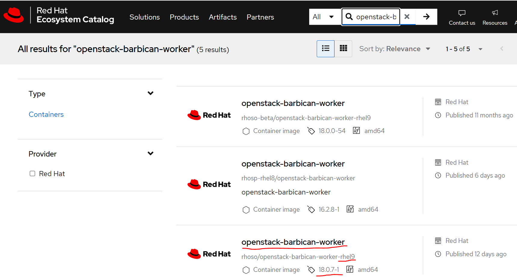 Modify the image name as shown above which is required for RHOSO18 Fr2 Barbican API & Worker images, as per red hat registry.