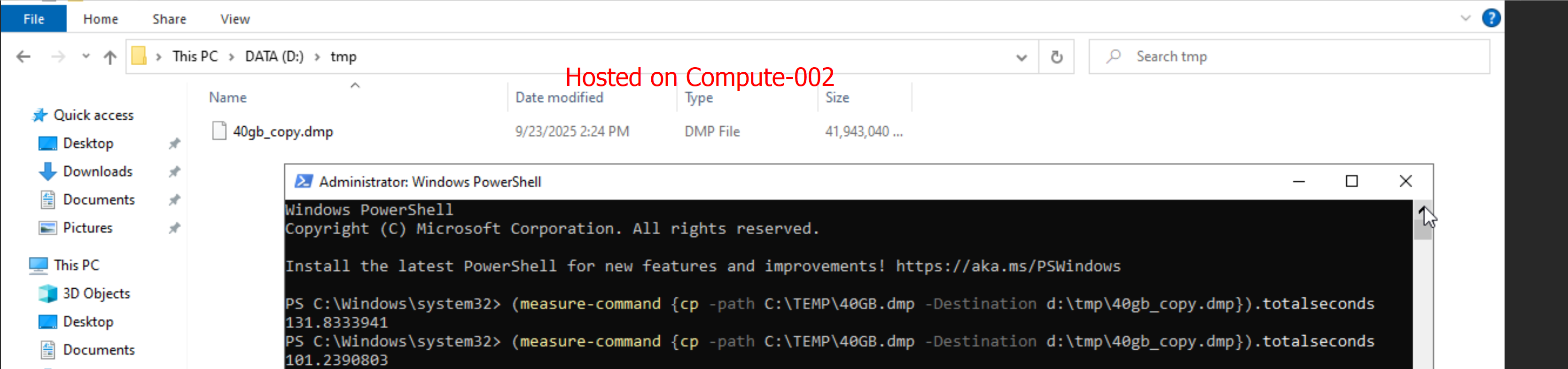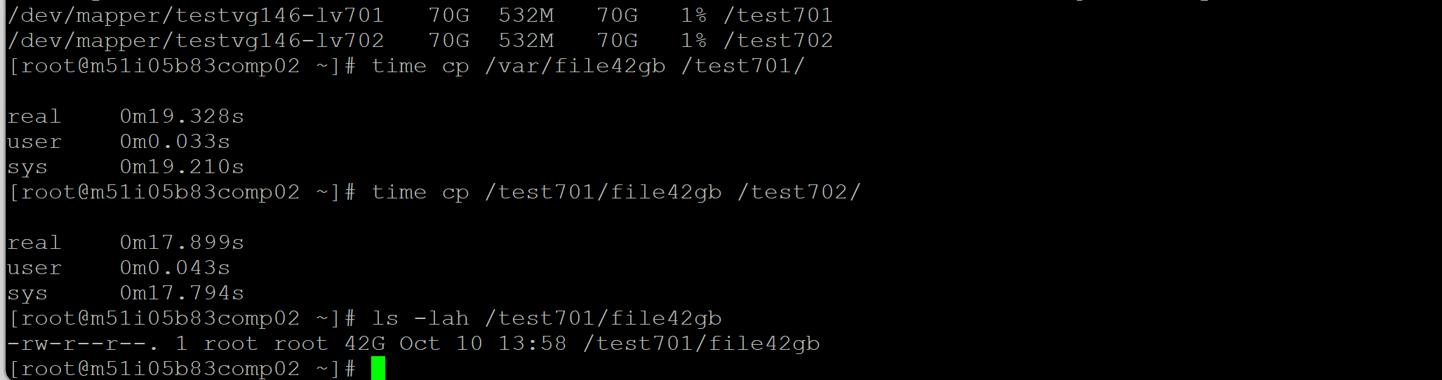 time cp /tmp/40gb.dmp /temp1/.