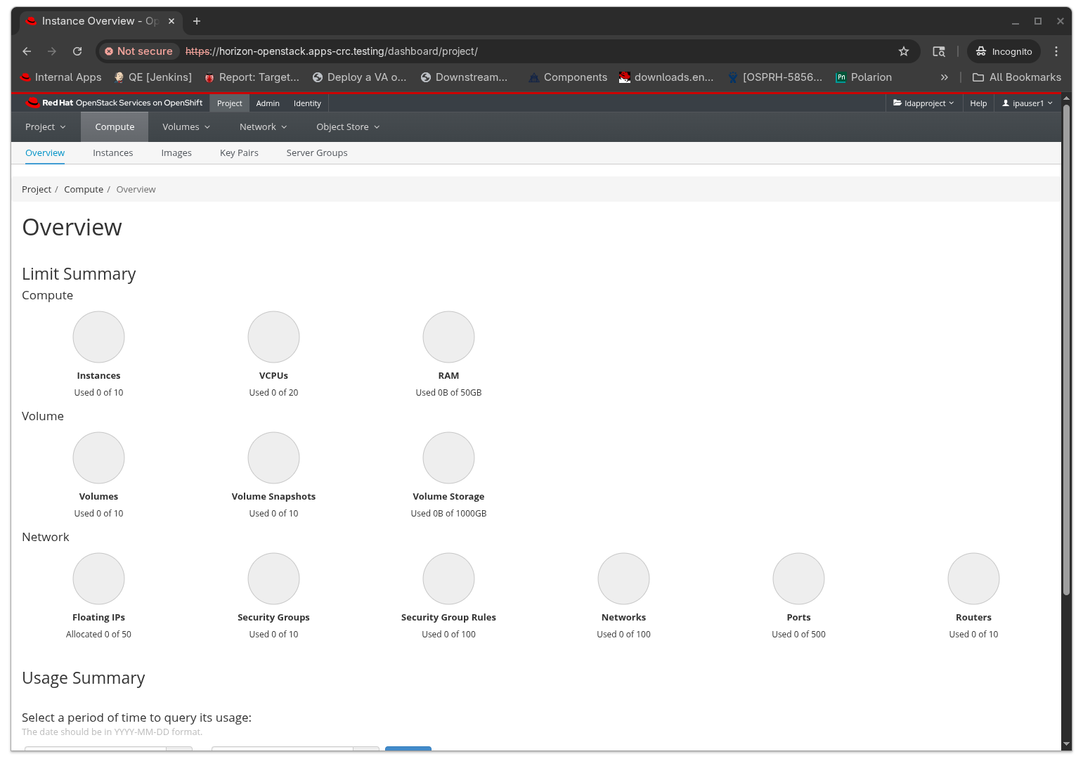 Connect vi browser to horizon-openstack.apps-crc.testing