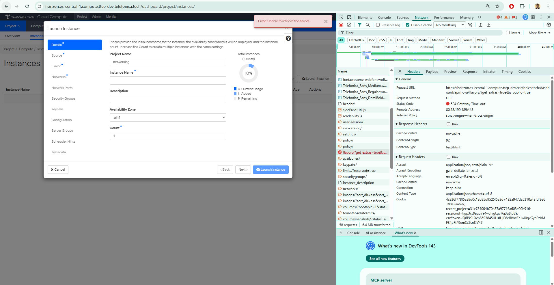 - Horizon slow behavior when creating a VM - 500 error has been received and several flavours were removed, this partly solved the issue but it is not acceptable workaround.