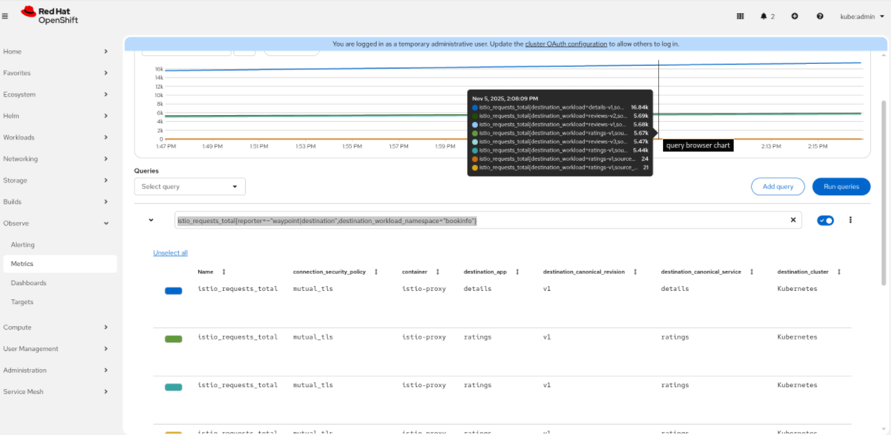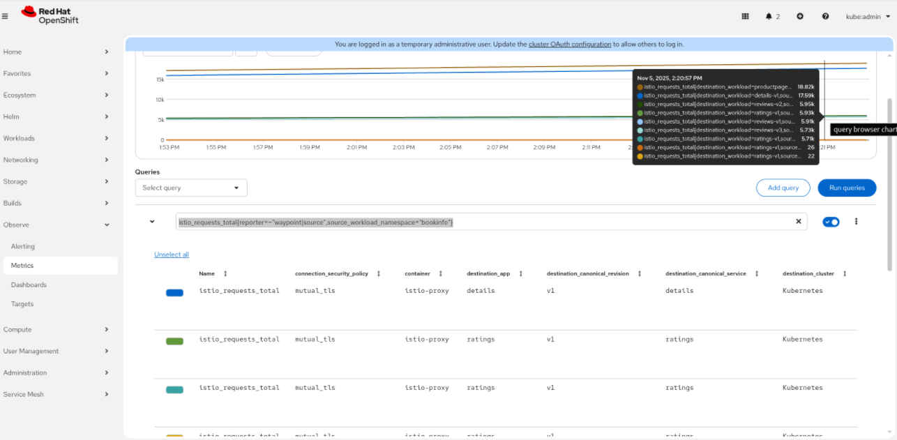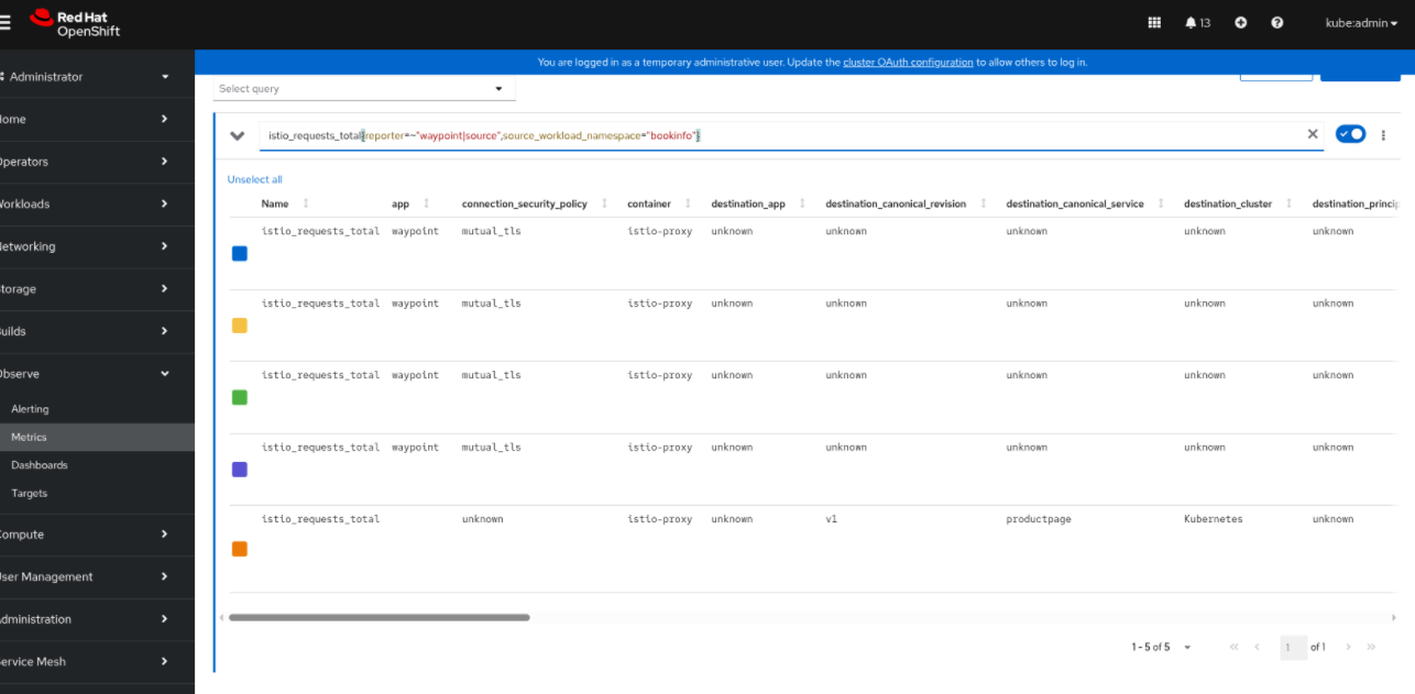 istio_request_total{reporter=~"waypoint|source",destination_workload_namespace="bookinfo"}