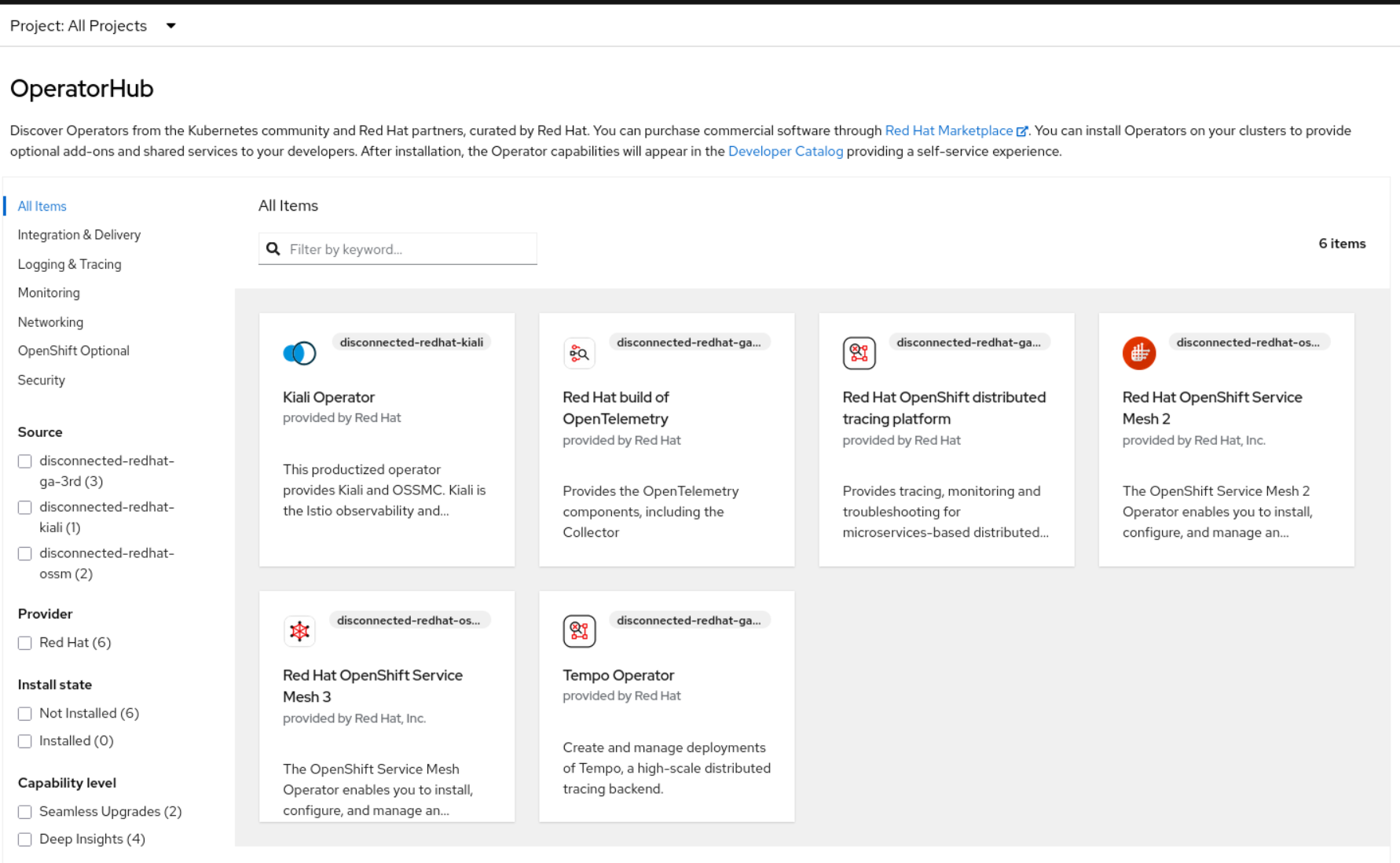 - disconnected-redhat-kiali for kiali (ga, brew or stage, depends on job parameters)