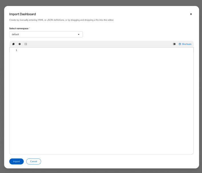 - When clicking the "import" button on top of the dashboard list. A popup to paste the dashboard YAML or JSON should appear.