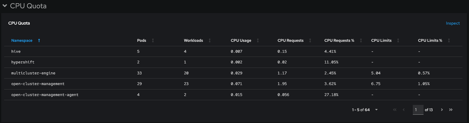 8. Collapse CPU section to look directly to CPU Quota - it is a table format
