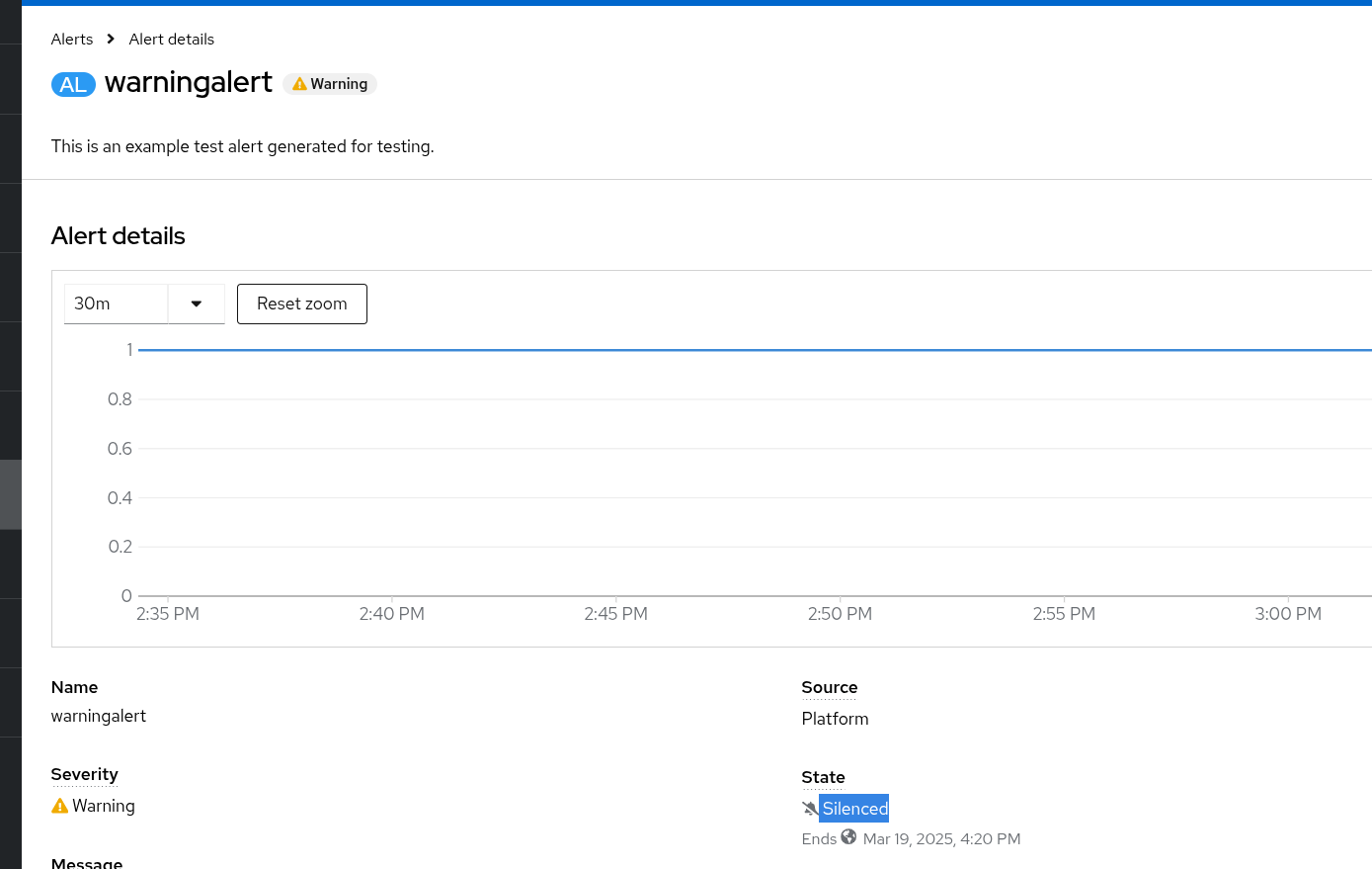 • the state of the alert is still firing or resolved, only the icon and the bar color is affected. in other words, silenced is an additional separate boolean property of the alert, not a new 3rd state