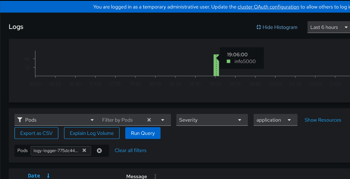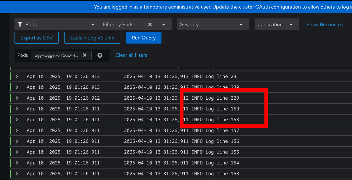 - Navigate to "Observe > Logs" menu in webconsole.