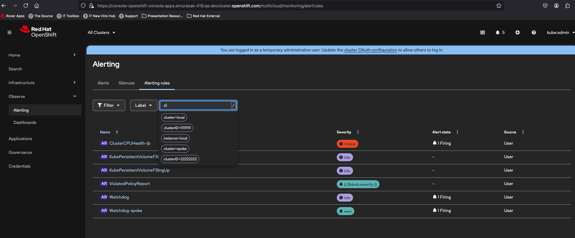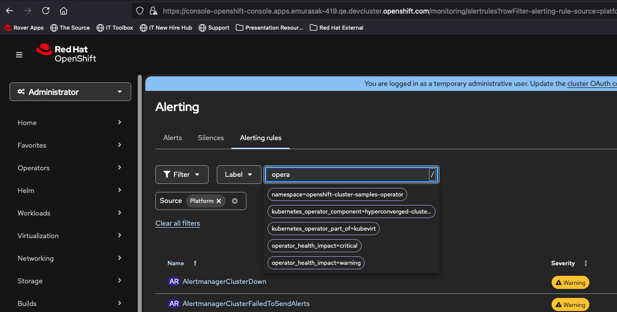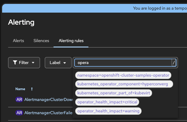 - Click on View all > Alerting page is loaded with pre-defined filters, including Label but empty page